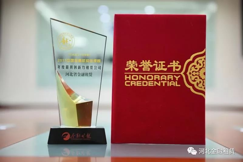 近日,《金融時報》2017年會暨中國金融機構金牌榜頒獎盛典在京舉行,此次頒獎盛典中,河北省金融租賃有限公司(以下簡稱河北金租)榮膺最具創新力租賃公司獎項。